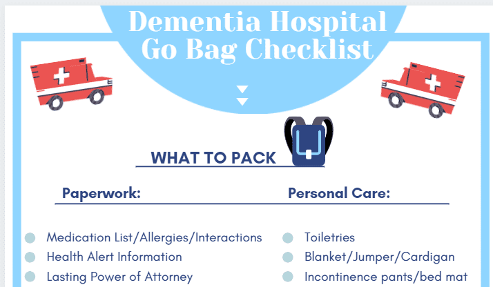 Click here to download a Dementia Hospital Go Bag Checklist pdf