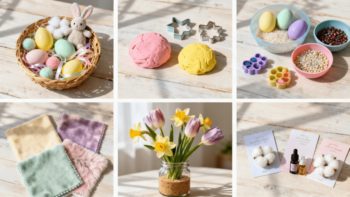 You could gather a few squares of fabric such as fleece, velvet, or faux fur. Easter themed pastel colours work well, but the texture matters more than the appearance.