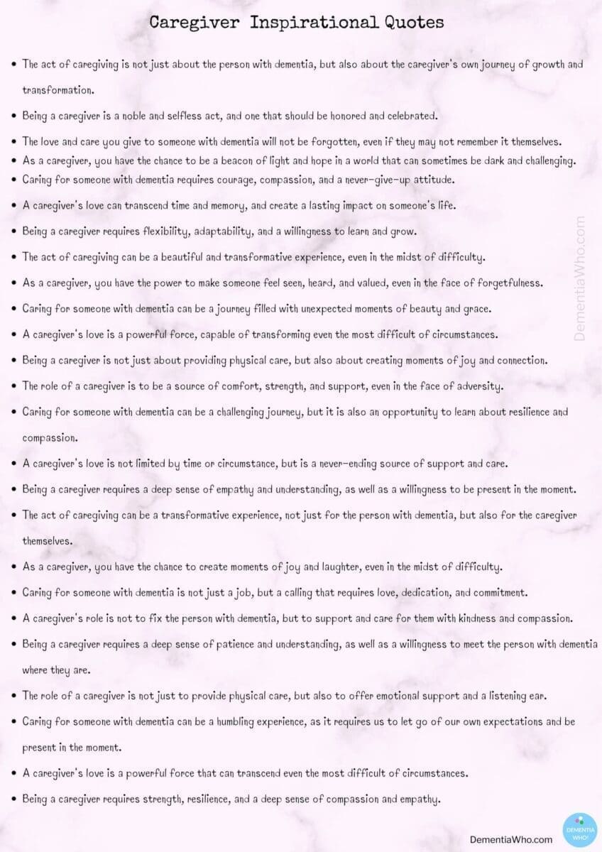 Here’s a compilation of caregiver and dementia quotes that have helped lift my mood, reflect on the role we do, raise awareness on the importance of caregivers. Hope you find them helpful, I’ll be adding to this Inspirational Quotes list periodically.