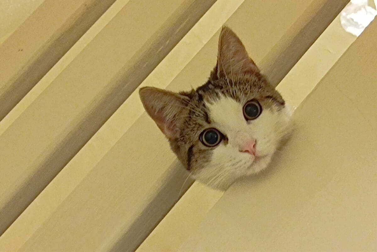 Here’s Kikki pic this week, looking adorable peeking through the stair banisters….